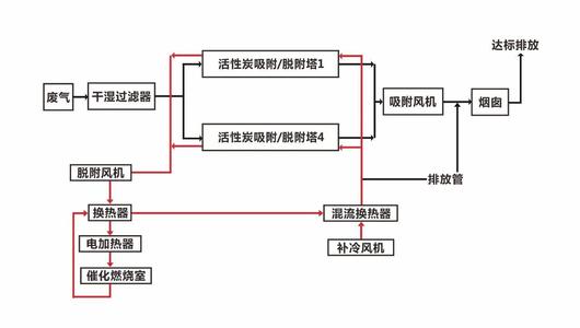 催化燃燒裝置一共分為兩個部分,即吸附和催化燃燒。有機廢氣在進入催化燃燒設備后,廢氣中的有害物質被活性炭吸附,當活性炭快達到飽和時停止吸附,然后用熱氣流將有機物從活性炭上脫附下來使活性炭再生;脫附下來的有機物已被濃縮(濃度較原來提高幾十倍)并送往催化燃燒室催化燃燒成二氧化碳及水蒸氣排出。